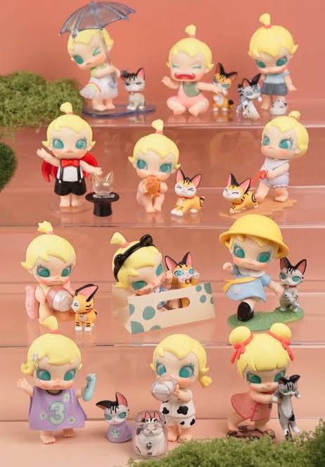 La serie Baby Molly & Baby Tabby trae al adorable dúo: la niña Molly y su inseparable gatito Tabby en diseños colchonudos, tiernos y súper coleccionables. Cada caja sorpresa contiene una figura aleatoria de esta serie, lo que añade emoción y sorpresa a cada compra. Perfecta para decoración, regalo y para fans del estilo kawaii que buscan piezas únicas con mucho encanto.